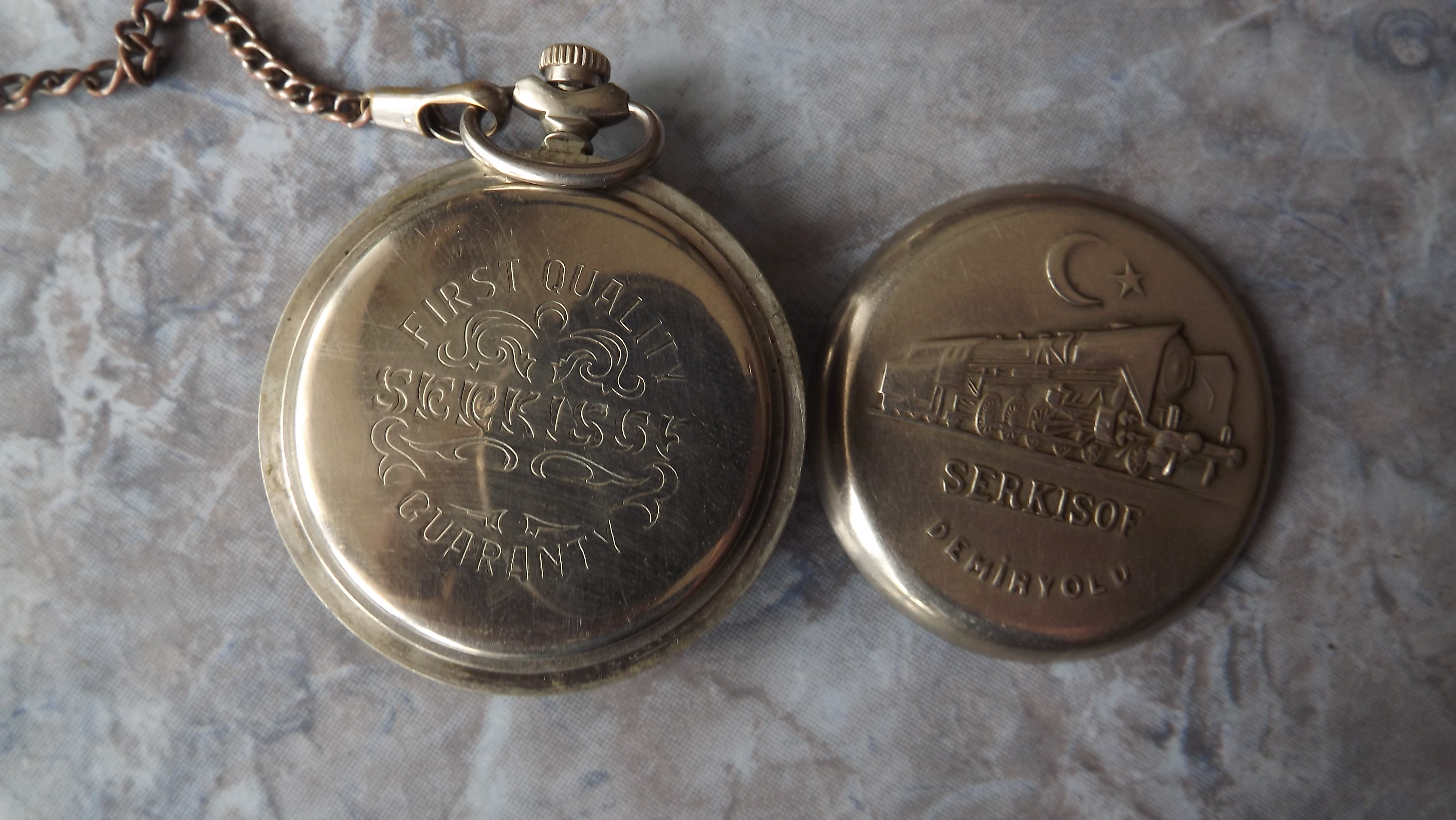 В конце 20 века на территории стран СНГ можно было встретить карманные часы с механизмом «Молния» Челябинского часового завода с изображением паровоза ИС на задней крышке часов, но с брендом Serkisof Demiryolu. Причем наименование расположено как на крышке под паровозом, так и на циферблате. Кроме того, на циферблате расположена эмблема железнодорожников — колесо от железнодорожного подвижного состава с крылышками. У коллекционеров часов да и у владельцев таких часов возникают вопросы происхождения этих часов. Однако, конкретных ответов нет, одни домыслы и предположения. Кто-то говорит о каком-то греческом торговце, заказывавшем часы в Челябинске под своим именем, кто-то говорит, что смена названия, это маркетинговый ход и т.п. Что удалось узнать нам из анализа очень скудной информации применительно к имеющейся нашей информации. Часы с брендом Serkisof выпускал в Турции ювелир Саркисов, родившийся в Константинополе. Он, в 1880 году организовал производство карманных часов. Спрос на часы был большой, благодаря чему с конца 19 к началу 20 века марка этих часов приобрела довольно хорошую репутацию. Часы этой марки были довольно популярными на местном рынке и к тому же не каждый мог приобрести часы при изготовлении которых использовались драгоценные металлы. Поэтому покупателями стали высокопоставленные лица государства и высшие чины армии Османской империи. О дальнейшей судьбе Саркисова и его семьи ничего не известно с средины 20-х годов. По отдельным сведениям он якобы эмигрировал в другую страну. По другим предположениям семья Саркисова была полностью вырезана во время геноцида армян. Вторая версия более правдоподобна, ведь как бы могла исчезнуть семья довольно не бедного человека. Уже с середины 30-х годов права на бренд Саркисоф и фабрику приобрел турецкий предприниматель и продолжил выпускать часы. В СССР часы Serkisof стали известны сразу же после второй мировой войны. Полагают, что прототипом часового механизма Молния, а именно Салюта (который выпускался до Молнии вторым Московским часовым заводом), является именно Саркисоф. Размер механизма и компоновка деталей механизмов схожа. Достоверно известно, что часы Молния Челябинского часового завода поставлялись по заказу в Турцию. Железная дорога Турции была обеспечена именно этими часами. Слово Demiryolu означает (переводится с турецкого) железная дорога. Об этом же свидетельствуют красные цифры на циферблате, эмблема и турецкая символика на задней крышке. Последняя крупная партия заказанных в Турцию часов не была востребована в связи с отсутствием необходимости использования механических часов на железнодорожном транспорте в результате научно — технического прогресса.
